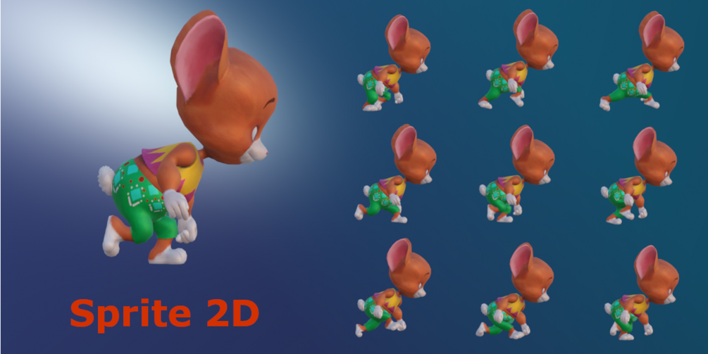 Sprite 2D add-on can be used to generate 2d sprite animation from 3d animated models, this add-on makes the life of 2d game developers much easier, whether you are creating animated sprites for a side-scroller game, top-down game or isometric game, this add-on makes the process much easier for you.